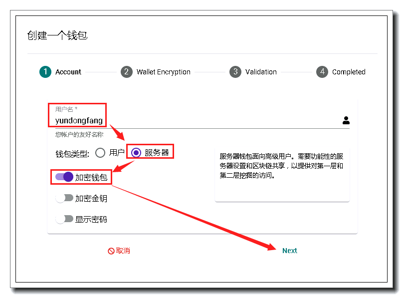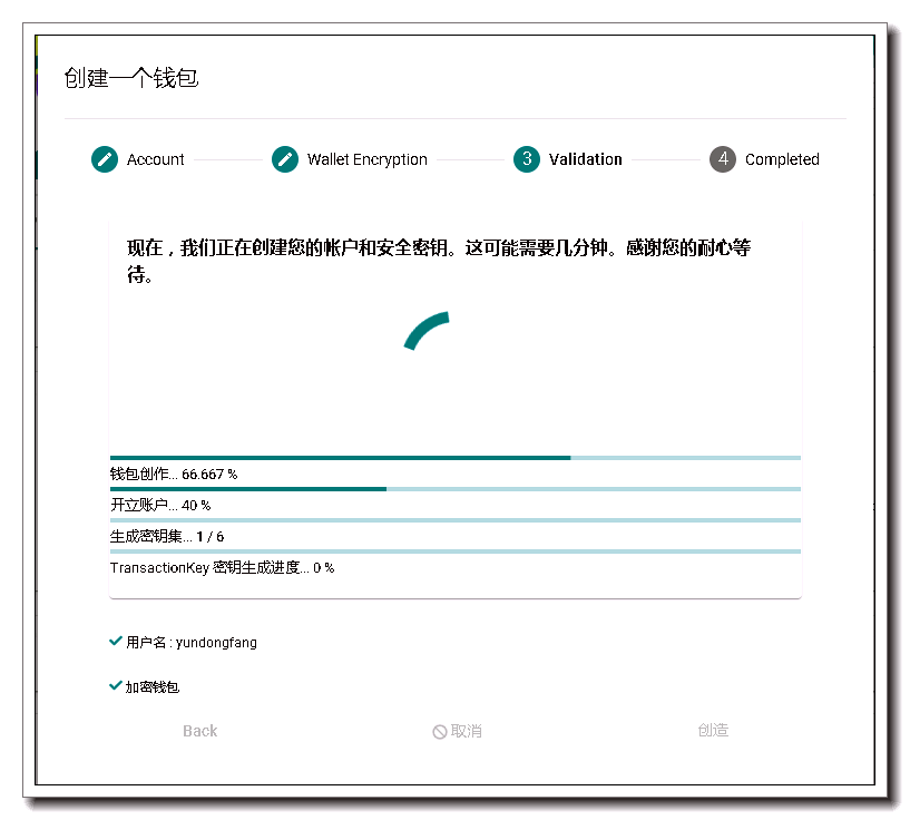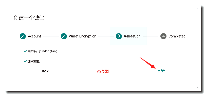 创建钱包和USER模式差不多,再看一下操作过程吧!