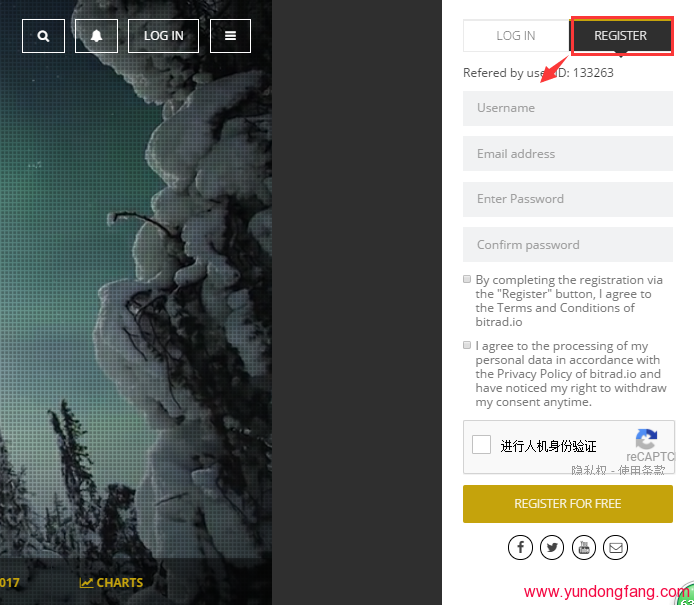 复制好钱包,登陆刚刚注册的官方网站http://bitrad.io/?ref=133263