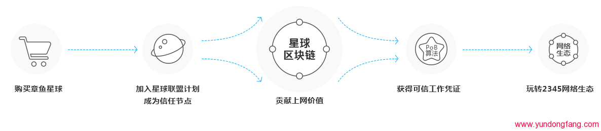 用户使用章鱼星球智能硬件并加入星球联盟计划,成为信任节点,上网时产生的行为贡献将基于区块链技术被量化,通过我们