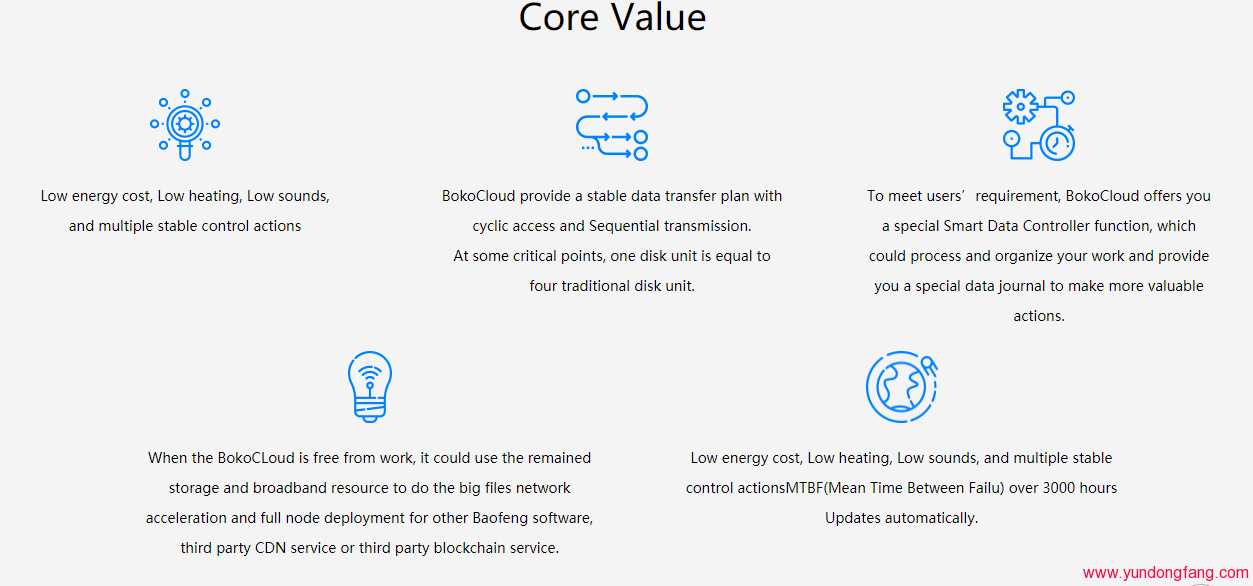 When the BokoCLoud is free from work, it could use the remained storage and broadband resource to do the big files network acceleration and full node deployment for other Baofeng software, third party CDN service or third party blockchain service.By sharing the storage and broadband resource, users could also earn bopocoin.